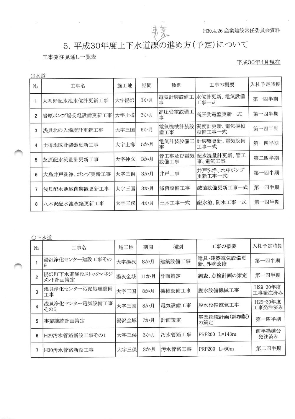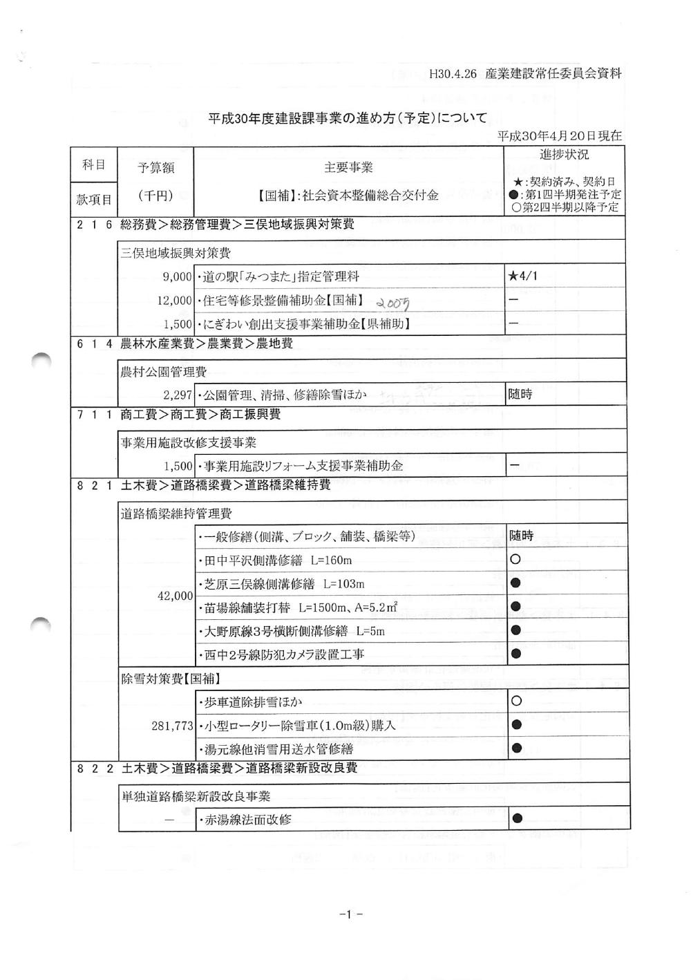 平成30年度建設課事業の進め方(予定)について