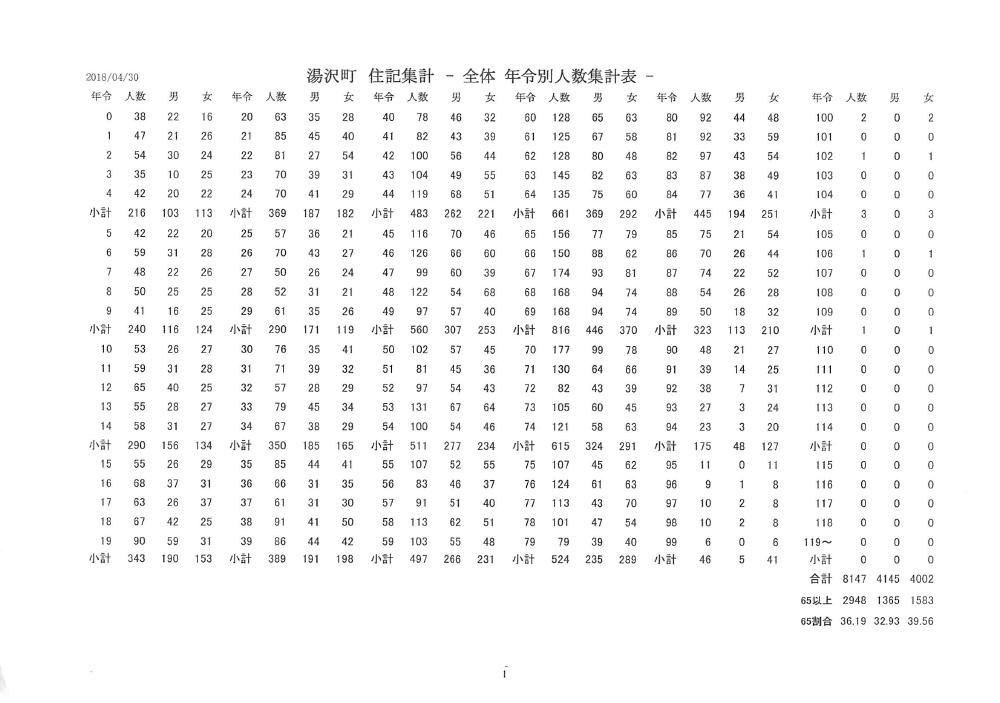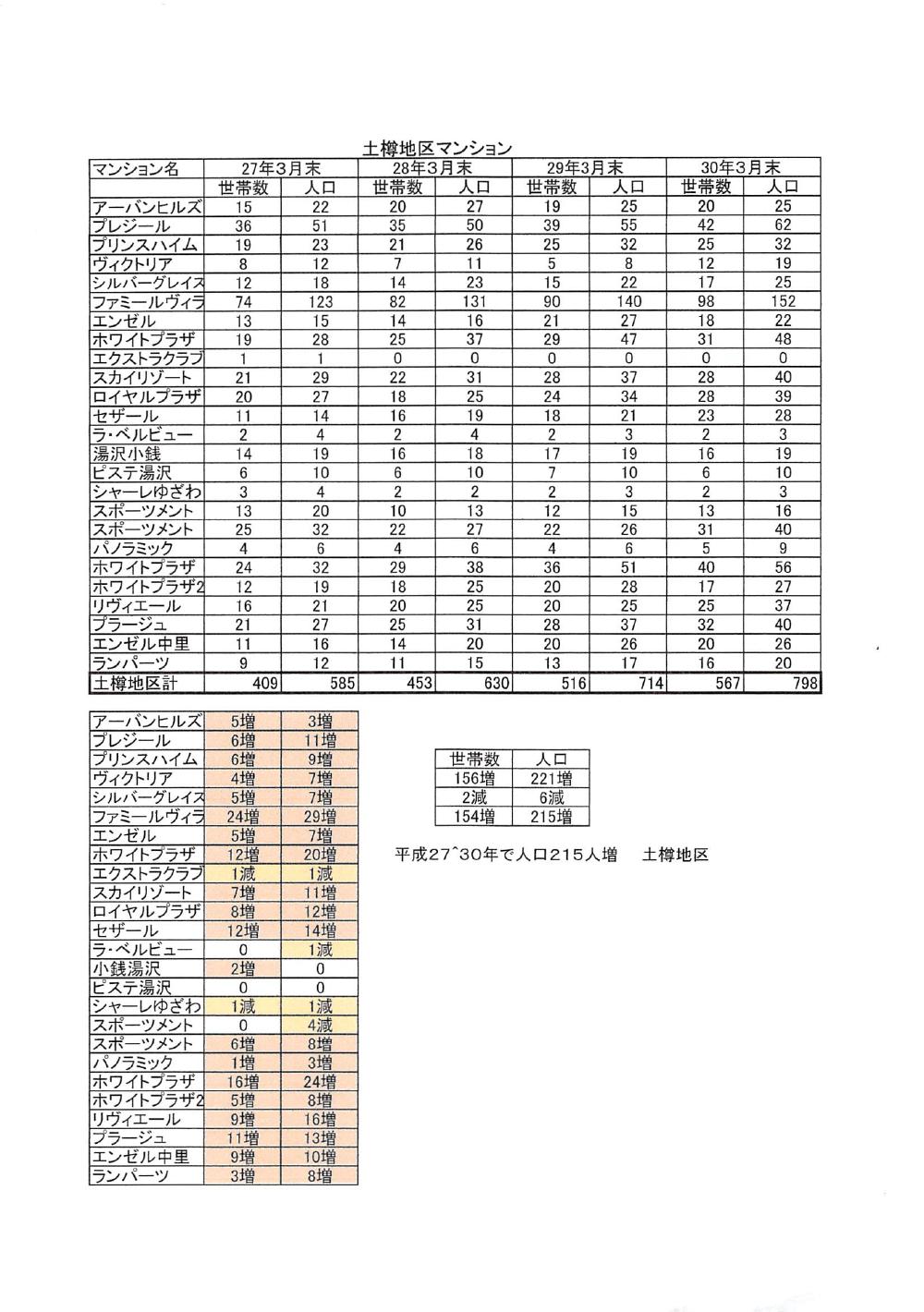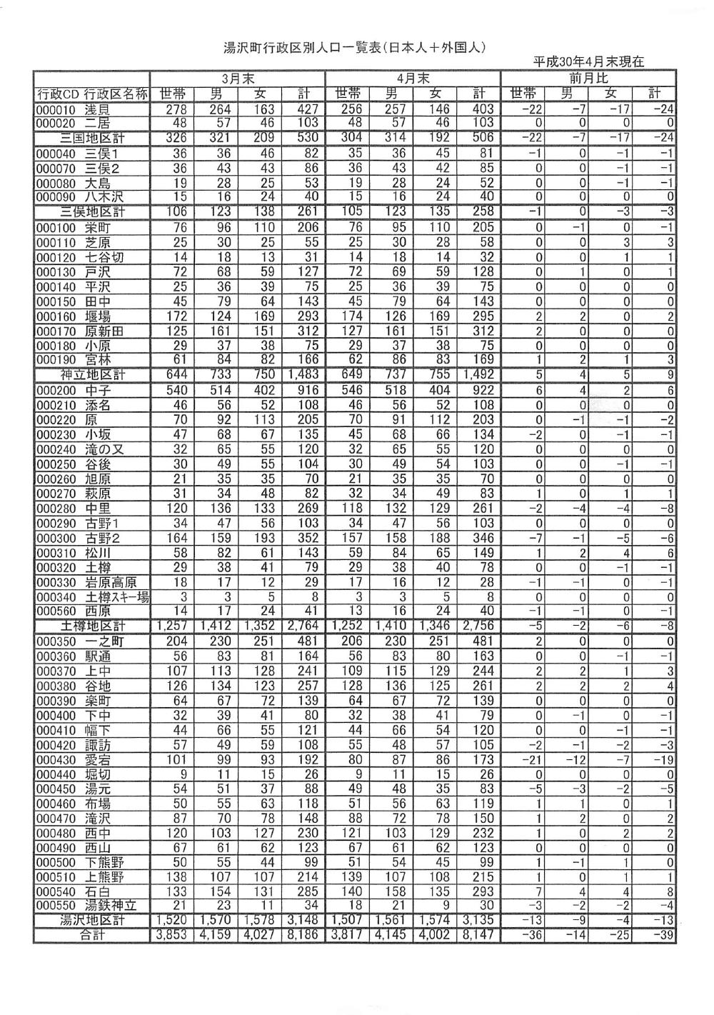 湯沢町行政区別人口一覧表