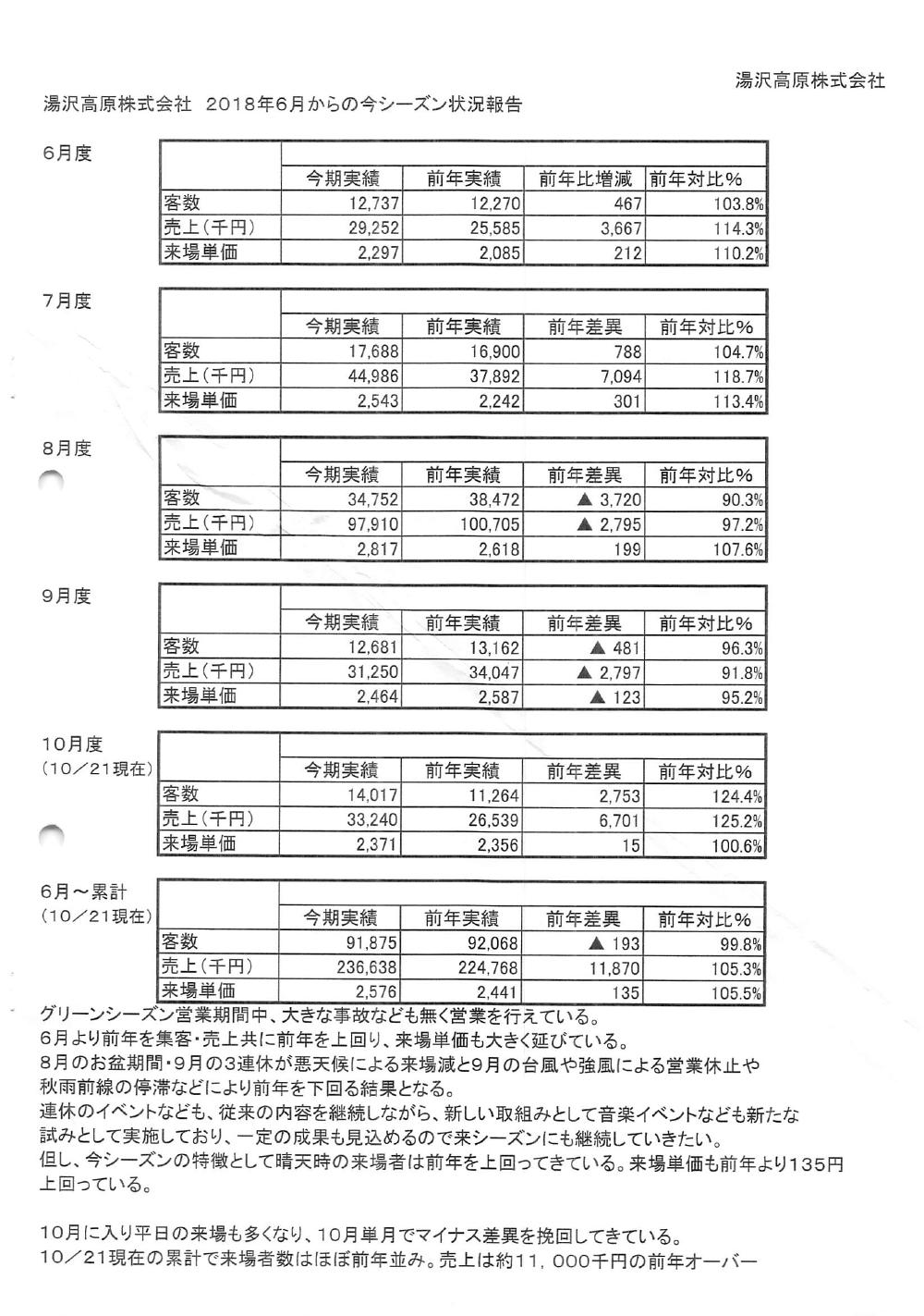 湯沢高原の決算