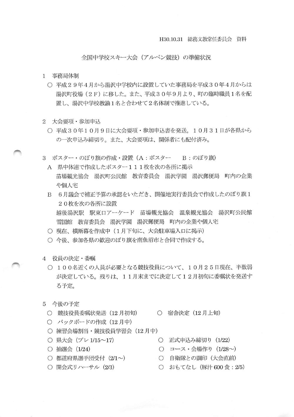 全中スキー大会の準備状況について
