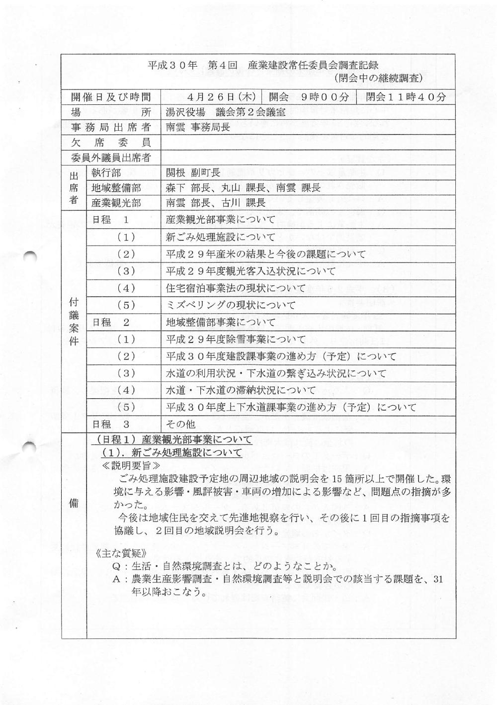 産業建設常任委員会 H30年 第04回  2018/04/26