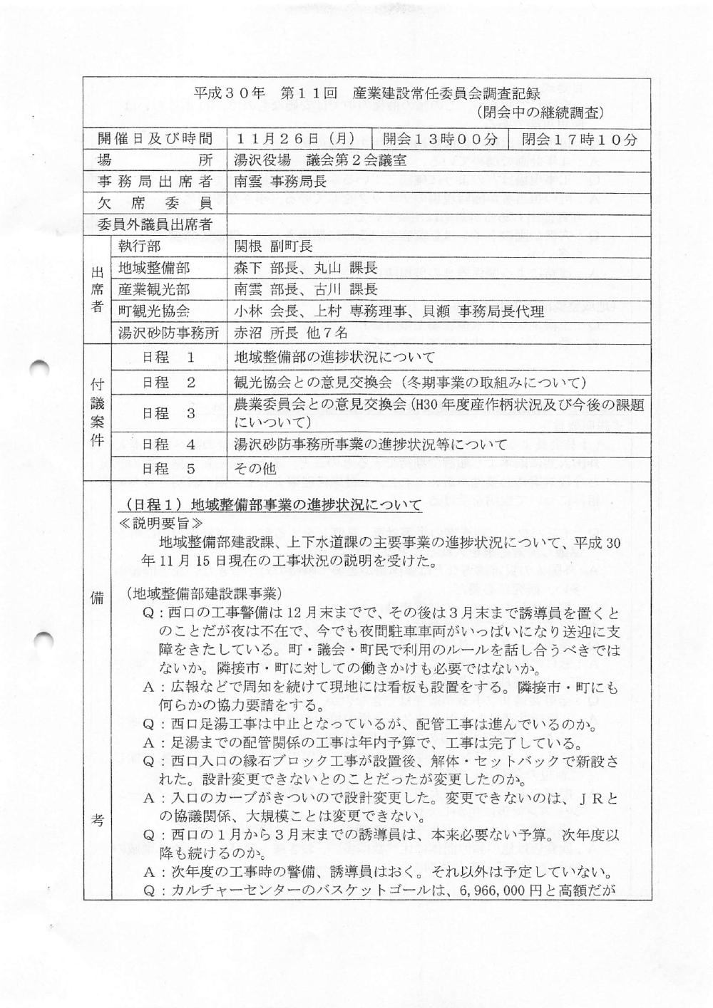 産業建設常任委員会 H30年 第11回  2018/11/26
