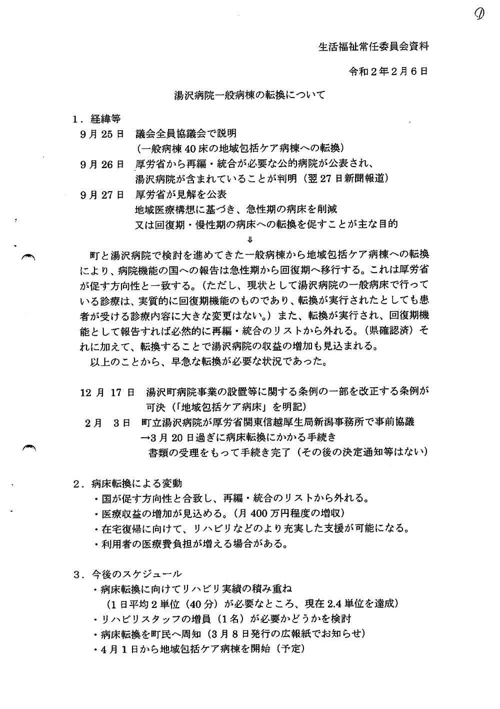 ・湯沢病院の病床転換と迎営状況について
