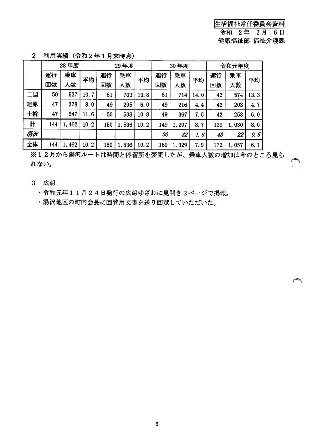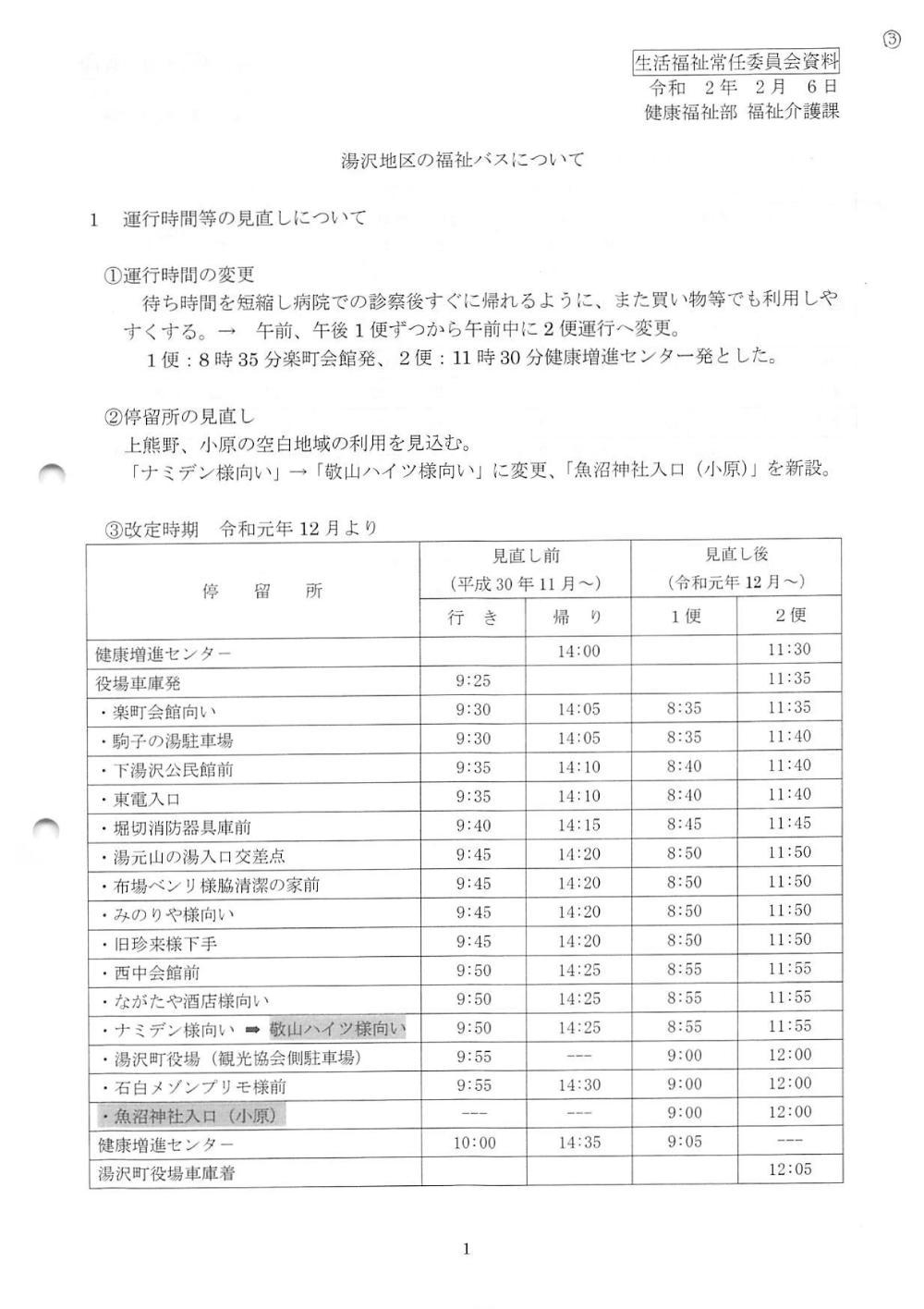 ・湯沢地区の福祉バスについて