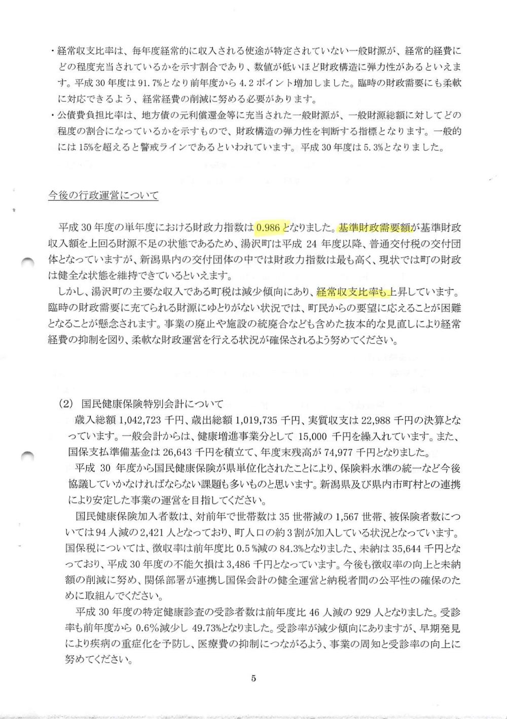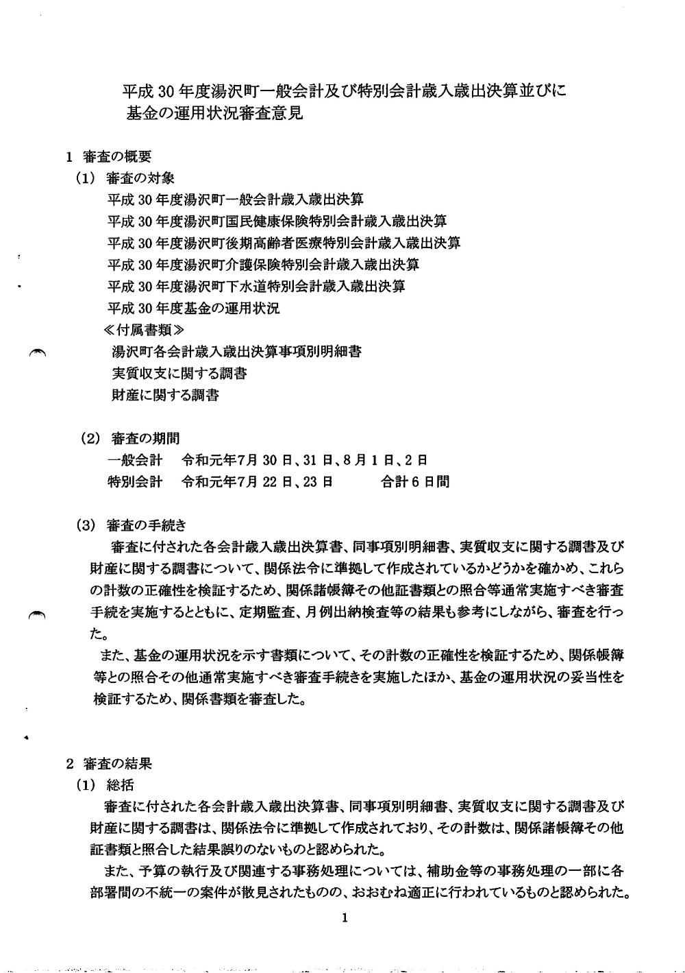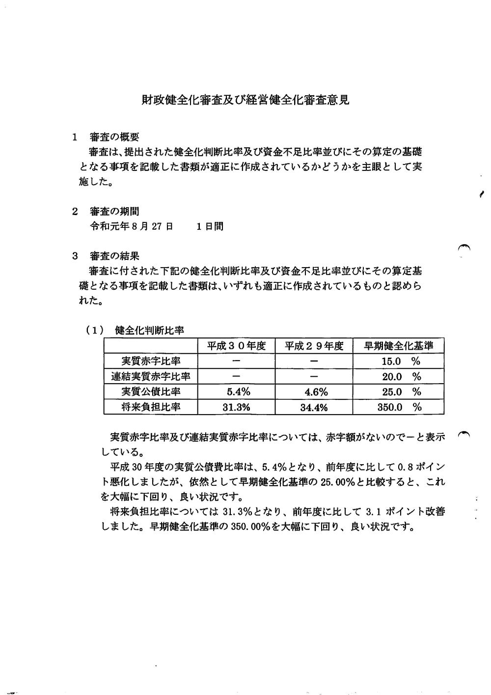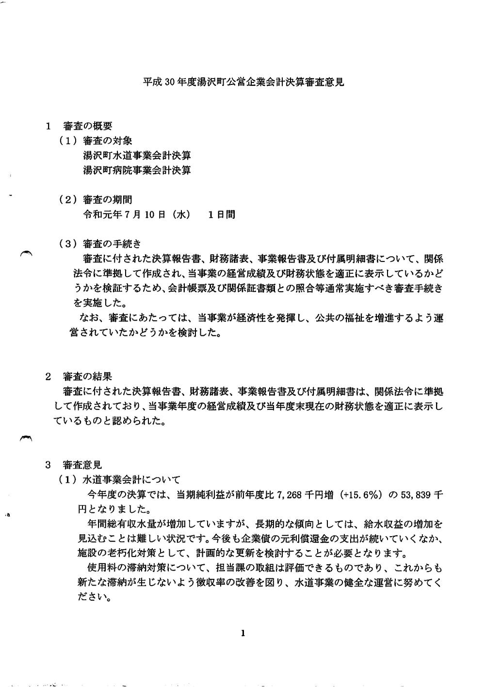 平成30年度監査意見書