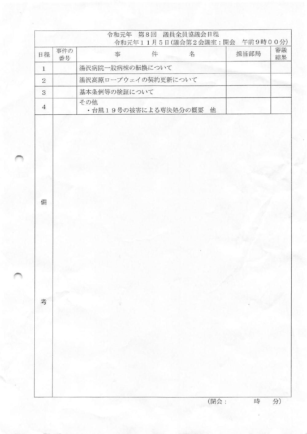 議員全員協議会 R1年 第08回  2019/11/05